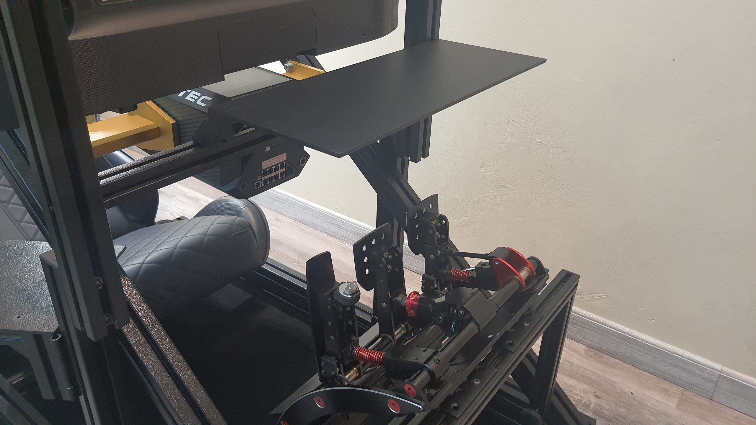 No need to have your PC or Console on a separate table – or worse, on the ground next to your cockpit.