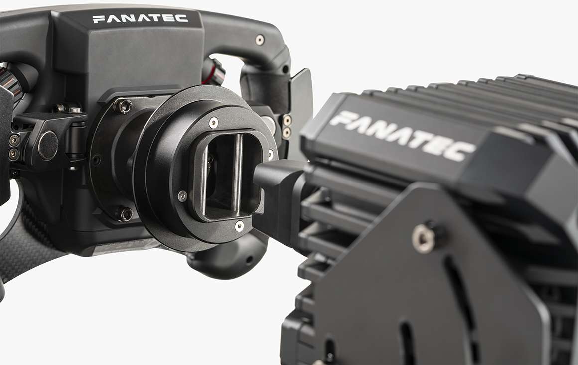 The ClubSport Steering Wheel Formula V2.5 X can be upgraded to the Podium Advanced Paddle Module, which adds a dual clutch paddle system and two pairs of magnetic paddles with 3 mm-thick carbon fibre plates.