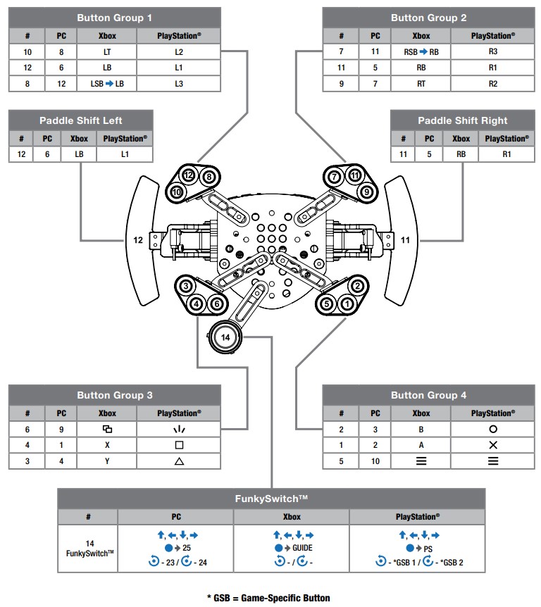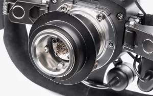 Magnetic shifters, adjustable button boxes, and a comprehensive array of buttons integrated into the hub itself means you’ll feel totally in control with any wheel rim.