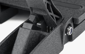 The pedal arms, faces, and heel rest are made from cast and machined aluminium, with a durable powder-coated finish. Additional bracing towards the rear of the assembly provides extra stiffness and stability under heavy load.