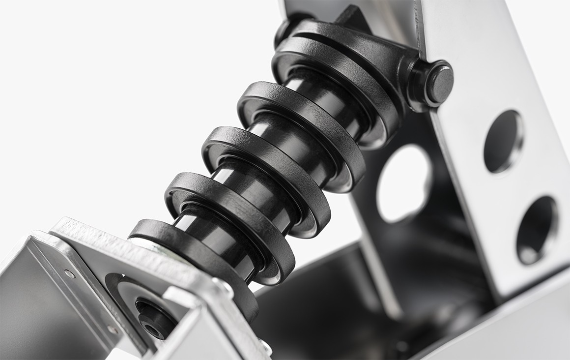 The elastomer stack on top of the load cell sensor provides a strong, realistic feeling of resistance under compression.