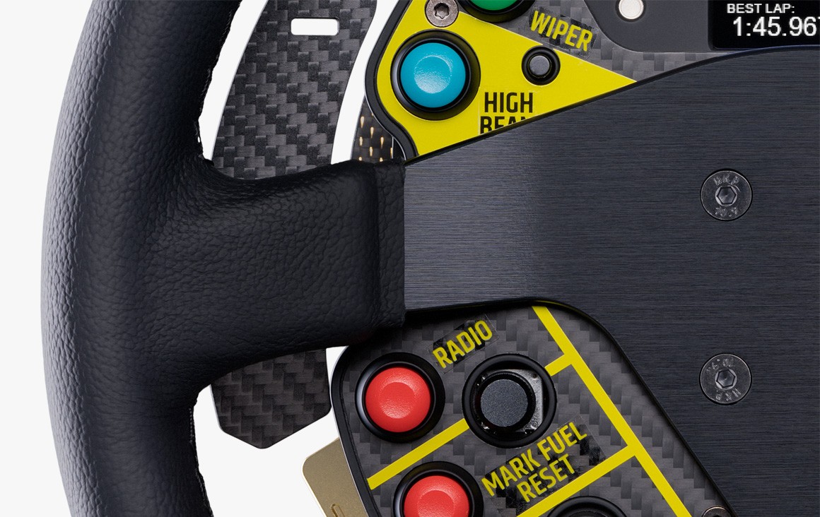 Create a stunning GT3-class steering wheel using the Podium Button Module Endurance.