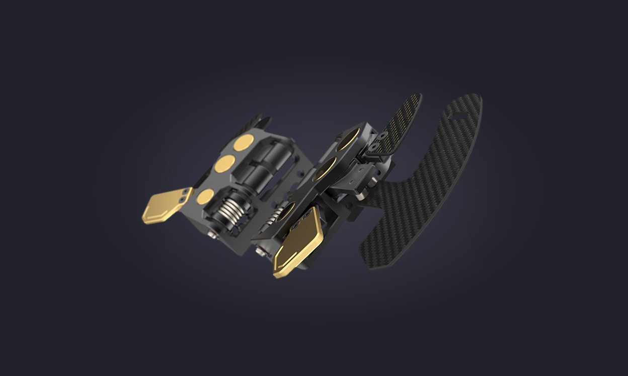 HIGH-END MATERIALS. Real carbon fibre front plate and internal metal reinforcements for maximum stability, and electronics contained within a rubber-coated, glass fibre-reinforced backplate.