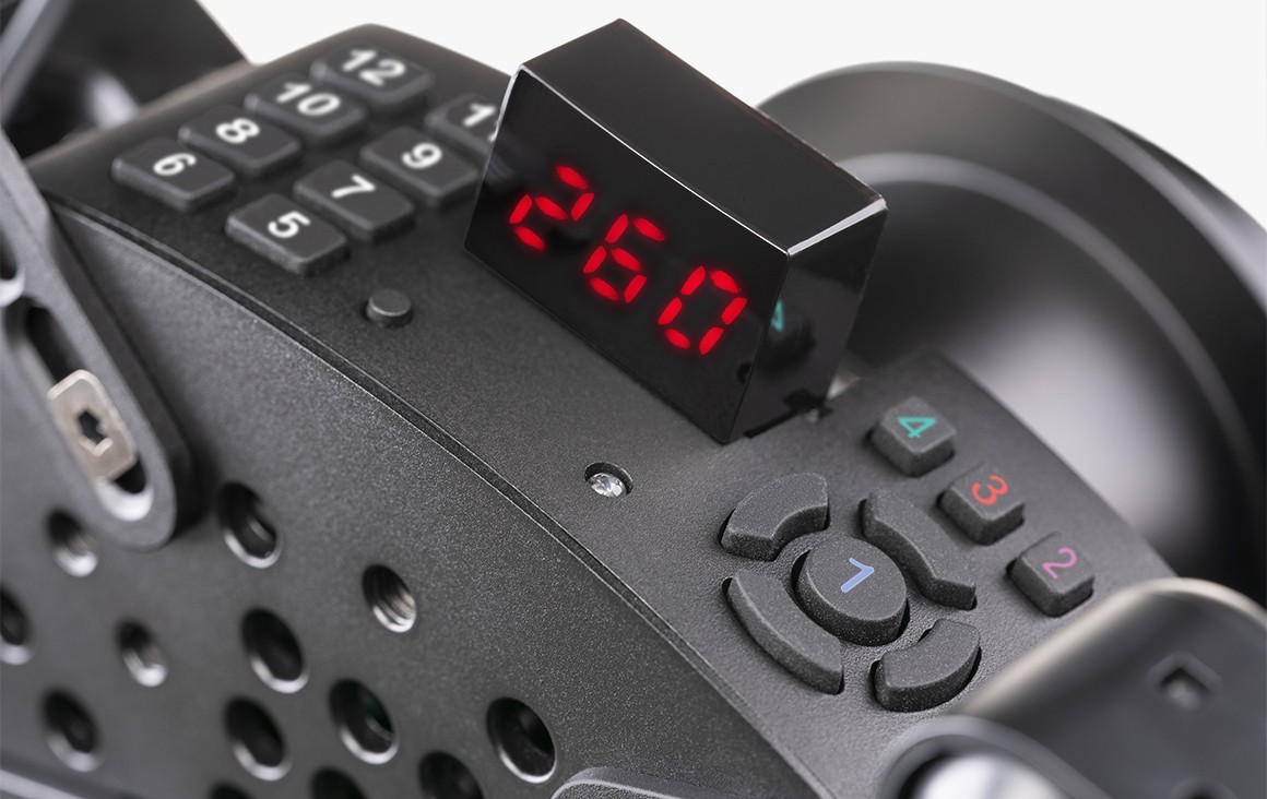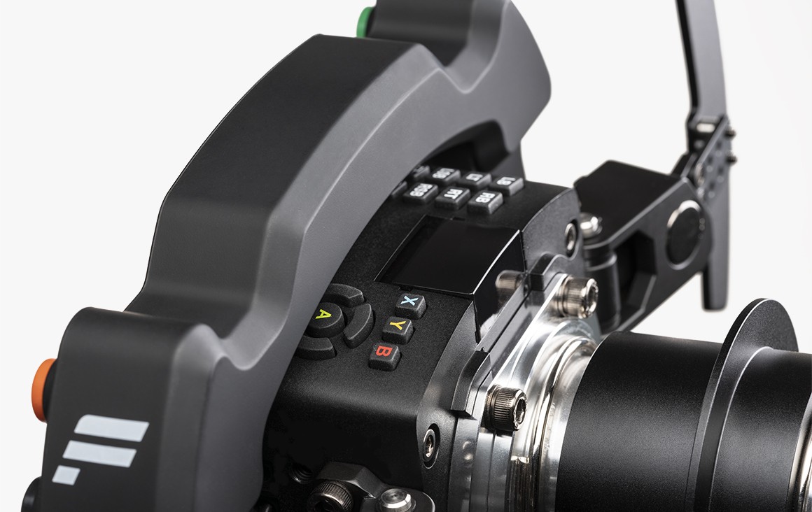 The customisable OLED display offers enhanced display capabilities through Intelligent Telemetry Mode (ITM). RGB LEDs and multiple input types are arranged neatly within the wheel rim, with instant access to force feedback adjustments using the Tuning Menu button.