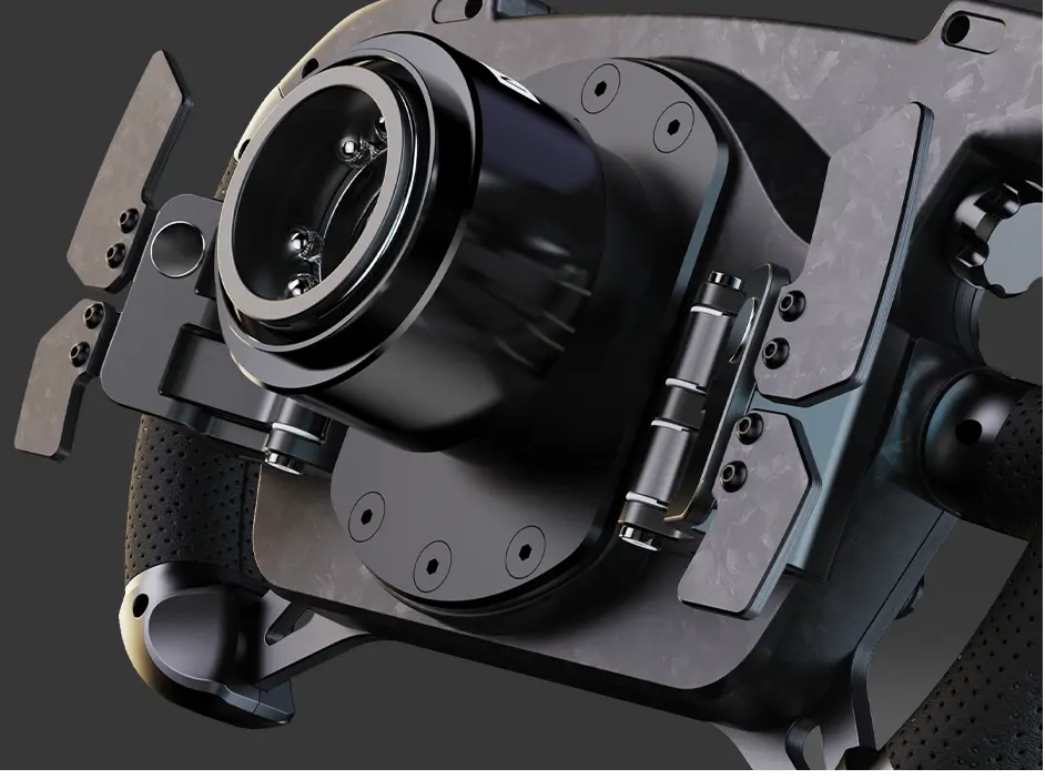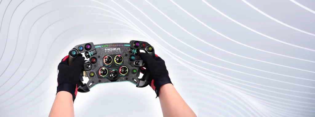 A comfortable but firm grip gives the GS a true-to-life GT feel. Even in the face of MOZA’s R21 torque, a driver has quick access to all adjustments they need to make in the heat of battle, with carefully placed joysticks, buttons and switches.